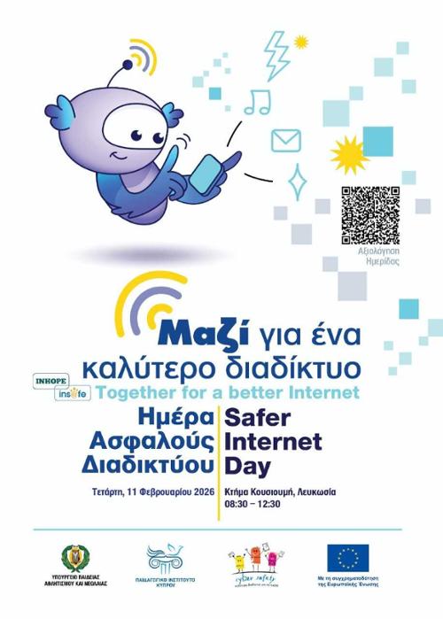 Με αφορμή την Safer Internet Day 2026, η Υποδιεύθυνση Ηλεκτρονικού Εγκλήματος Αστυνομίας Κύπρου ενώνει τις δυνάμεις της με το Παιδαγωγικό Ινστιτούτο Κύπρου και άλλους συναρμόδιους φορείς, συμμετέχοντας στην Ημερίδα που θα πραγματοποιηθεί στο Κτήμα Κουσιουμή (2572 Λευκωσία), στην περιοχή Χαλεπιανές, την Τετάρτη 11 Φεβρουαρίου 2026, από τις 08:30 π.μ. έως τις 12:30 μ.μ. (προσέλευση & εγγραφές 08:30–09:00).