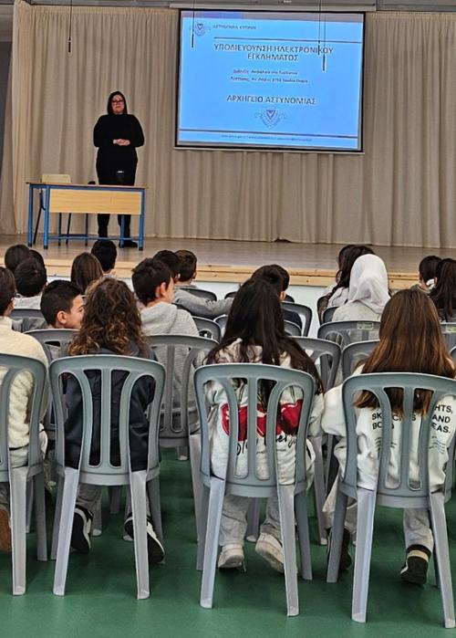 Στο πλαίσιο των δράσεων ενημέρωσης και ευαισθητοποίησης για την ασφαλή χρήση του διαδικτύου, μέλος της Υποδιεύθυνσης Ηλεκτρονικού Εγκλήματος της Αστυνομίας Κύπρου πραγματοποίησε διάλεξη στο Δημοτικό Σχολείο Τιμής στην Πάφο.